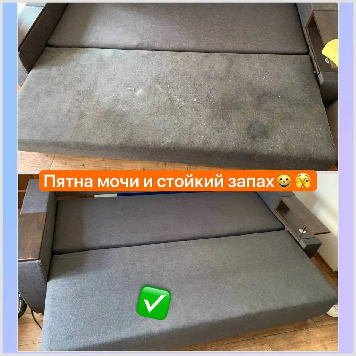 Часто к нам обращаются после того, как уже пробовали почистить сами. Разные средства могут вступать в реакцию, оставлять пятна, портить ткань. Особенно если нанести одно, потом другое — результат непредсказуем.